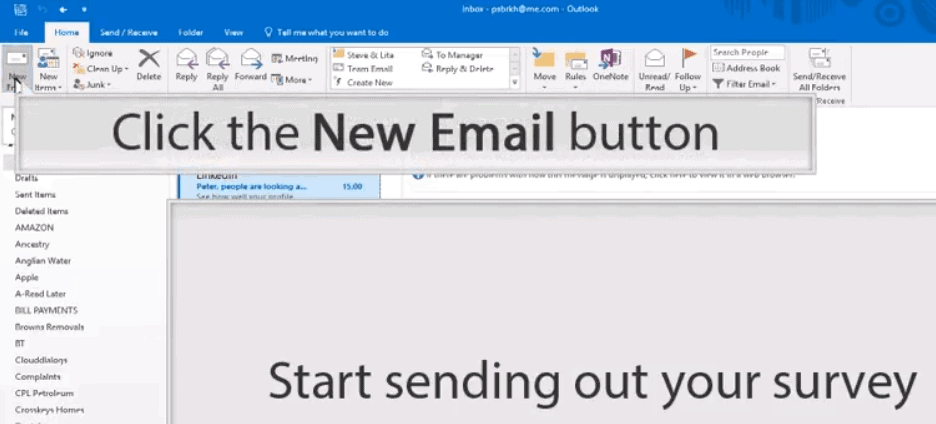When you're all done, click on Share Survey. This starts the process of creating a link between your survey and the form. Click Create to generate the link. You can copy and paste the link into your emails or you can click on "Email" to open up Outlook. Now you'll have all your contacts right where you need them.